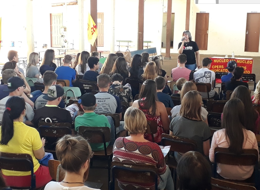 Na ocasião, representantes do sindicato da categoria (CPERS) falaram sobre medidas adotadas pelo governo do Estado que prejudicam os profissionais da área. Foram elencadas as PEC´s que estão em trâmite na Assembleia Legislativa, que ferem frontalmente os servidores públicos, como a retirada das datas de pagamento do salário, bem como a exclusão da “Licença Prêmio”, dificultando a formação e especialização de professores.