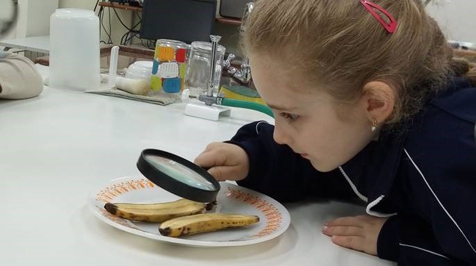 O equipamento 3D, disponível no Colégio, também foi utilizado na observação da estrutura das folhas de diversas plantas, sendo toda a pesquisa registrada pelos estudantes através de desenhos e da escrita. Na Semana Farroupilha, as turmas manusearam a erva-mate e conheceram mais sobre sua história e cultivo, além de brincarem com as sementes e folhas ao ar livre, explorando os elementos naturais através do brincar.