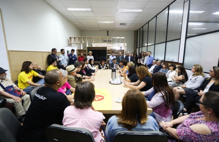 O secretário-chefe da Casa Civil, Fábio Branco, reforçou o compromisso do governo do Estado em priorizar o pagamento de todos os servidores até o dia 15 do mês seguinte, considerando os dias úteis. O anúncio foi feito durante reunião com a direção do Cpers/Sindicato, na manhã desta terça-feira (10), na Secretaria de Educação (Seduc). Junto com a secretária adjunta da Educação, Iara Wortmann, o secretário pediu que os professores considerem esse esforço do governo, que atravessa uma das piores crises econômicas, e retornem às aulas. A direção do Cpers/Sindicato, no entanto, manteve a decisão de seguir com a paralisação, que já dura 35 dias, o que vai levar à recuperação de aulas até os primeiros meses de 2018.