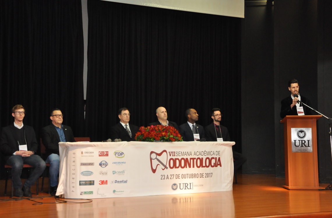A abertura do evento foi prestigiada pelo diretor-geral do câmpus, Paulo José Sponchiado; pelo chefe do Departamento de Ciências da Saúde da URI, Flávio Zambonato; pelo Coordenador de Saúde Bucal de Erechim, Anderson Pillon; e pelo representante do Conselho Regional de Odontologia, Evandro Balen.