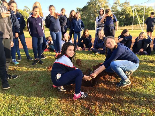 No domingo pela manhã, os participantes foram até a Vila Olímpica para realizarem o plantio de uma muda de araçá visando conscientizar sobre a importância do plantio de árvores, inclusive no ambiente escolar.