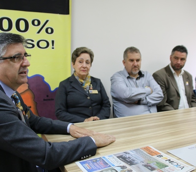 Antes do último compromisso – audiência com o prefeito de Erechim, Luiz Francisco Schmidt – Luiz Acorsi, acompanhado da esposa Joana Maria Provin Acorsi, de representantes de clubes de Rotary de Erechim, da Casa da Amizade, governador assistente, coordenadores distritais, instrutores e secretários, concedeu entrevista ao Jornal Bom Dia para falar sobre as ações do ano Rotariano.