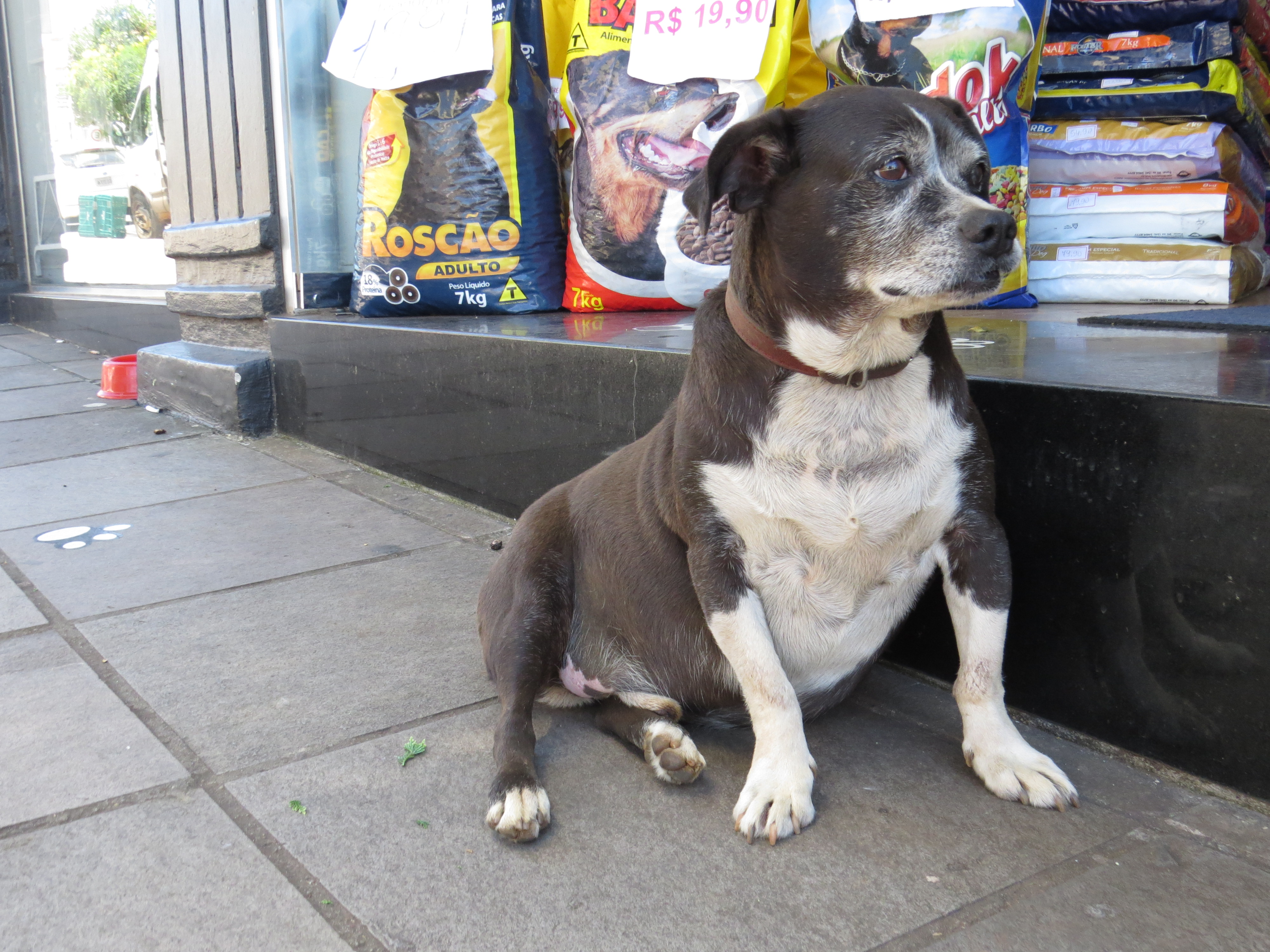 Quem nos conta a história do Preto, é o empresário Paulo Roberto Madalozzo, proprietário de um pet shop no local. “O Preto vive por aqui há cerca de 14 anos. Durante o dia ele passa a maior parte do tempo em frente a nossa loja e à noite os taxistas recolhem ele para que o Preto durma abrigado na garagem que existe logo aqui em frente. De manhã, o primeiro taxista a chegar solta o Preto para que ele fique junto ao nosso convívio”, conta o empresário.