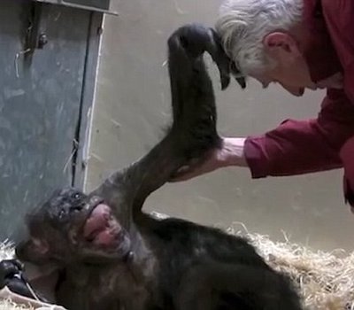 O professor Jan Van Hooff fundou a colônia de chimpanzés no zoológico Royal Burguers em Arnhem, na Holanda, na qual Mama era a matriarca – e Van Hooff, seu primeiro cuidador. No ano passado, aos 59 anos e muito debilitada, Mama recebeu a visita do velho amigo e a sua reação ao vê-lo é de marejar os olhos.