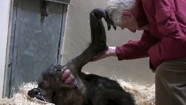 Muito fraca, ela foi visitada por seu cuidador Jan Van Hooff e mostrou alegria ao ver o velho amigo, que conhecia desde 1972.