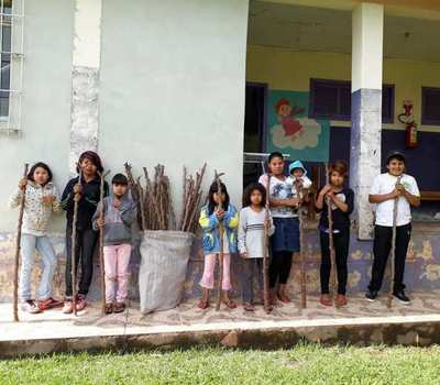 A ideia é impulsionar o plantio para contribuir com a alimentação das 15 famílias que atualmente residem na aldeia, levando em consideração o significado cultural da mandioca para estes indígenas, assim como o cultivo e o consumo do milho. O trabalho é realizado em conjunto com a escola para que as crianças também possam participar do processo, valorizando os cultivos de subsistência.