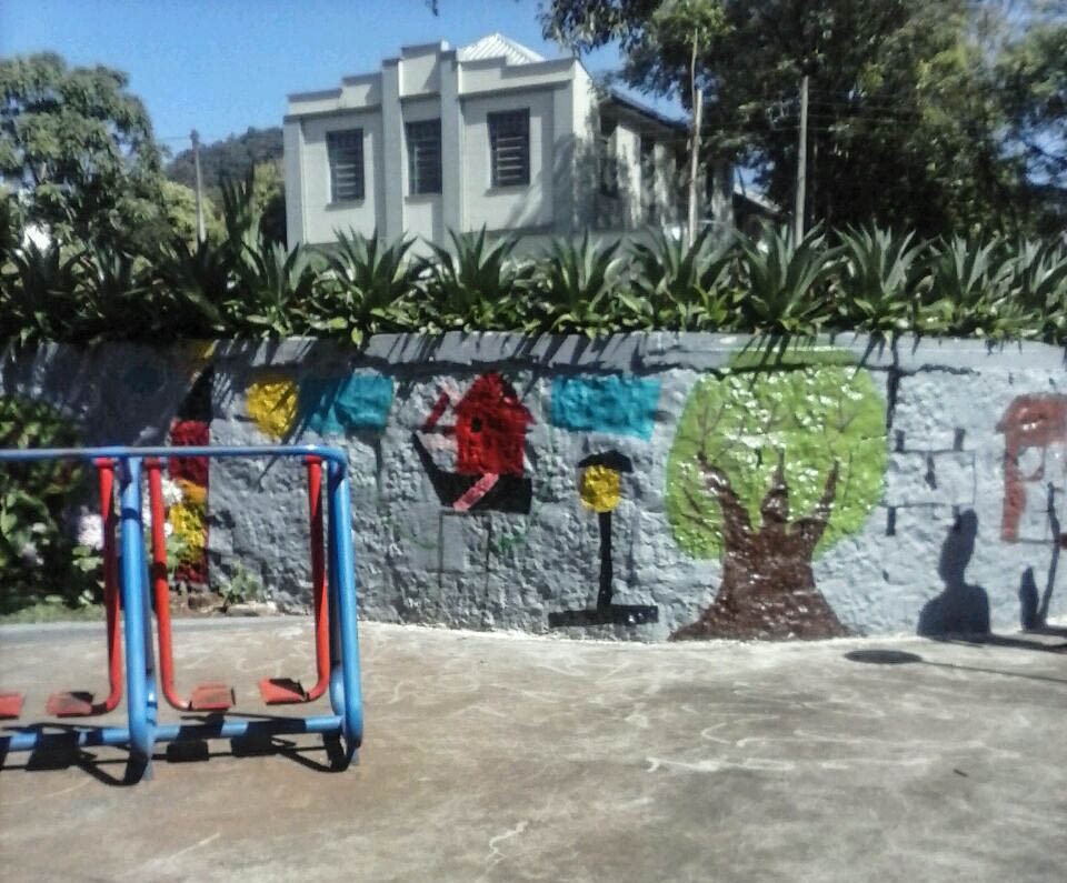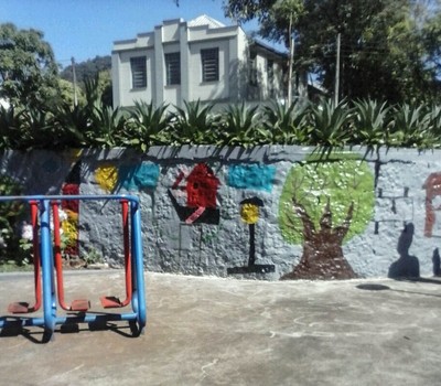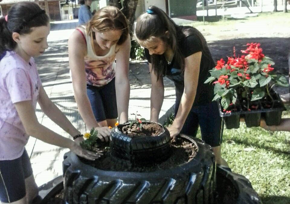 Utilizando materiais recicláveis, os estudantes criaram jardins e também realizaram a pintura de muros da praça.