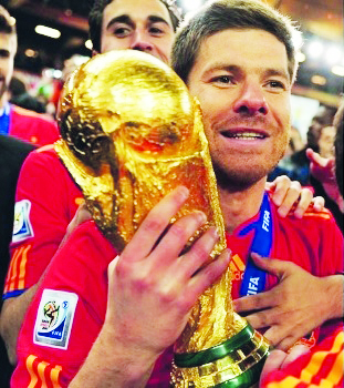 Xabi Alonso conquistou a Copa do Mundo de 2010. Em 11 anos de seleção, o espanhol entrou em campo em 114 jogos, conquistou 88 vitórias, 13 empates e três derrotas, marcando 16 em gols. Na Copa do Mundo, o volante atuou em 13 jogos e balançou as redes duas vezes, obtendo nove vitórias e quatro derrotas.