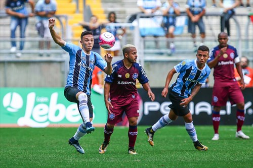 Aos 4 minutos, o Grêmio tentou tramar boa jogada descendo pelo meio. Lima deu passe em profundidade, mas o goleiro do time da serra conseguiu ficar com ela tranquilamente.