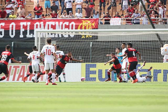 A equipe tricolor cresceu no jogo e pressionou, mas o empate não veio. No segundo tempo, o Flamengo praticamente só se defendeu, com o São Paulo buscando o empate a todo custo. Gabriel Novaes de cabeça, aos 29, teve ótima oportunidade para embatar. Yago fez boa defesa, e ainda parou chances de Igor Gomes e Rodrigo no fim do jogo.