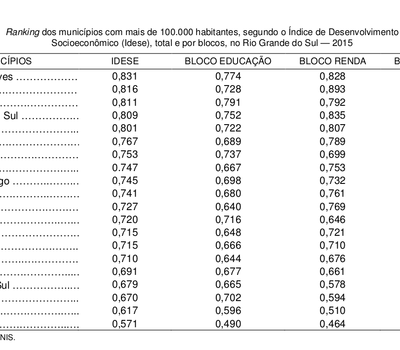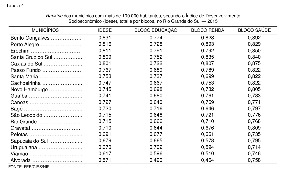 Na manhã de ontem (21), a Fundação de Economia e Estatística (FEE) divulgou o Índice de Desenvolvimento Socioeconômico do RS e também dos 497 municípios gaúchos de forma individualizada – Idese – relativo ao ano de 2015.