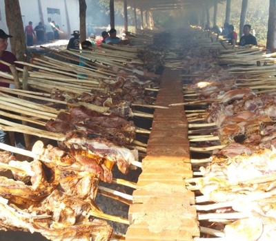 Ao meio-dia, cada morador recebeu um espeto de churrasco, pães e refrigerantes para levar para casa. Mais de 3 mil kg de carne foram preparados para a festa, sendo adquirida com recursos da própria comunidade e servida gratuitamente. Um almoço de confraternização ocorreu no salão comunitário, onde participaram pessoas convidadas.