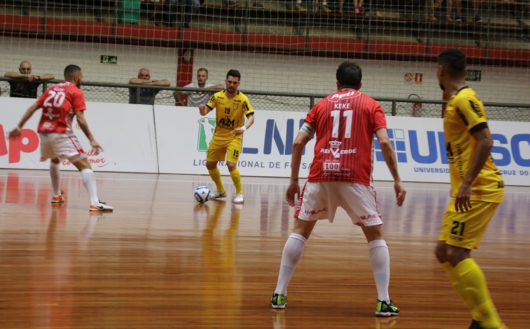 Atlântico e Assoeva voltaram à quadra na tarde deste sábado (5), em jogo válido pela sétima semana da Liga Nacional. E pelo placar de 5 a 3, o time de Erechim conquistou os três pontos. O técnico Giba, do Galo erechinense, iniciou com Careca, Allan, Wilsinho, Café e Keké. Fernando Malafaia, da Assoeva, entrou Deividi, Boni, Batata, Deivão e Caio Júnior.