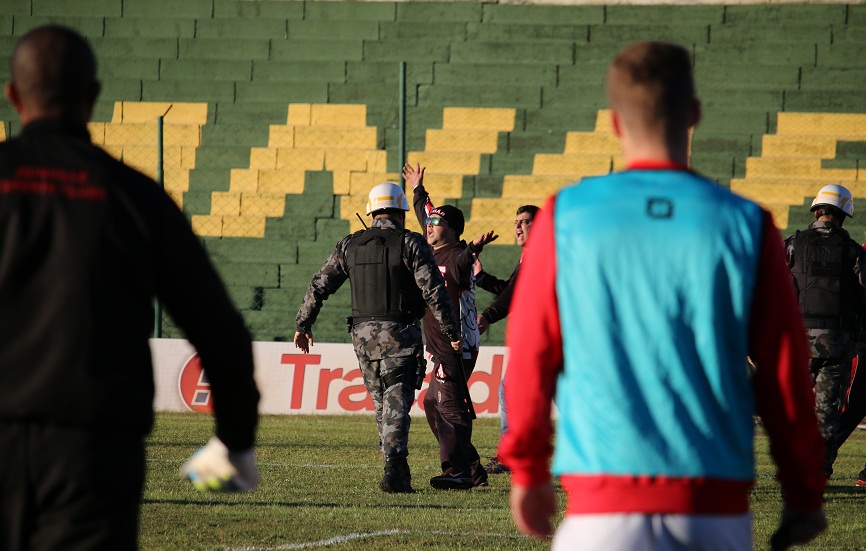 Após o Ypiranga marcar o segundo gols, torcedores do Joinville invadiram o gramado do Colosso da Lagoa. Em rápida movimentação, os militares da Brigada retiraram os catarinenses. Eles foram encaminhados a Delegacia de Pronto Atendimento (DPPA), onde realizaram um termo circunstanciado e foram liberados.