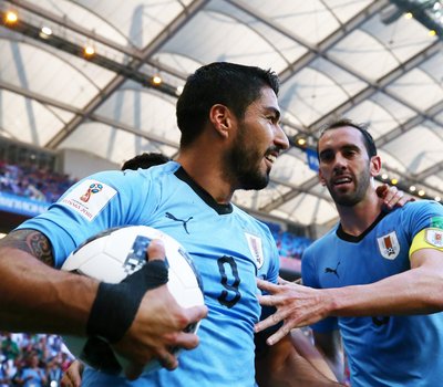 Se técnica e taticamente o Uruguai voltou a decepcionar, como na vitória da estreia sobre o Egito, também por 1 a 0, desta vez teve a celebrar mais um gol de Luis Suárez. E este bastante especial. Afinal, o atacante do Barcelona fez sua centésima partida com a camisa da seleção.