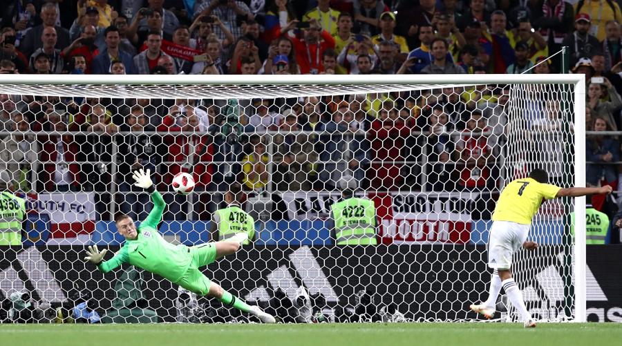 O goleiro Pickford colocou a Inglaterra nas quartas de final da Copa do Mundo da Rússia. Após empate por 1 a 1 no tempo normal e na prorrogação com a Colômbia, ele defendeu uma cobrança (a outra foi na trave) e garantiu a vitória dos ingleses por 4 a 3 nas penalidades, na tarde de ontem (3). Bacca e Uribe desperdiçaram para os colombianos.