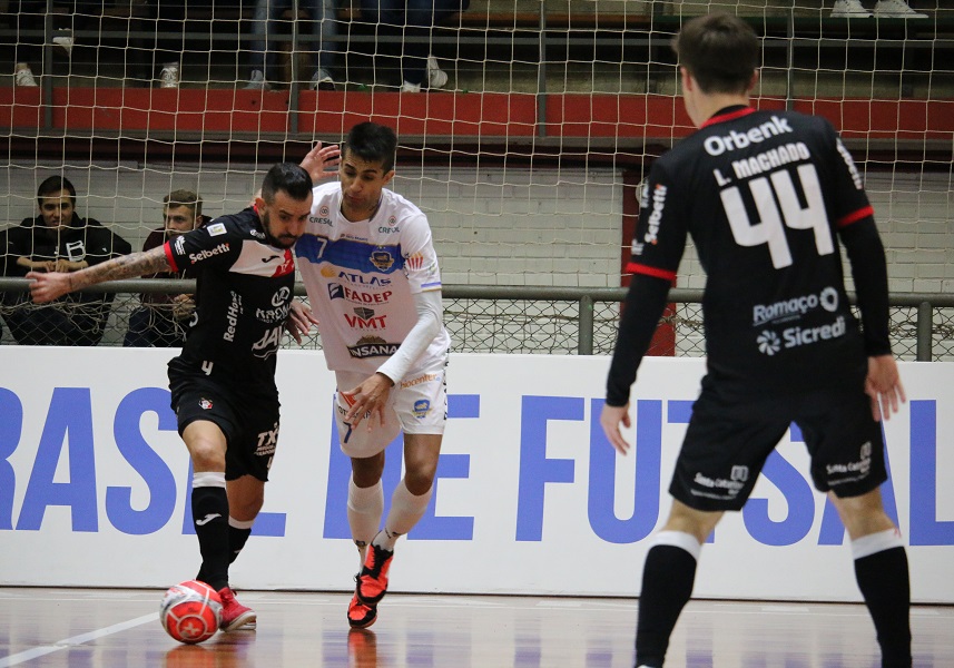 O Joinville levou alguns minutos para se encontrar dentro de quadra, mas quando a tática do técnico Iacovino se encaixou, os catarinenses empataram com Raul. Com o resultado de 1 a 1, foi a vez do tricolor de Santa Catarina pressionar. O time até chegou a balançar as redes, porém, o árbitro marcou falta.