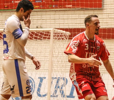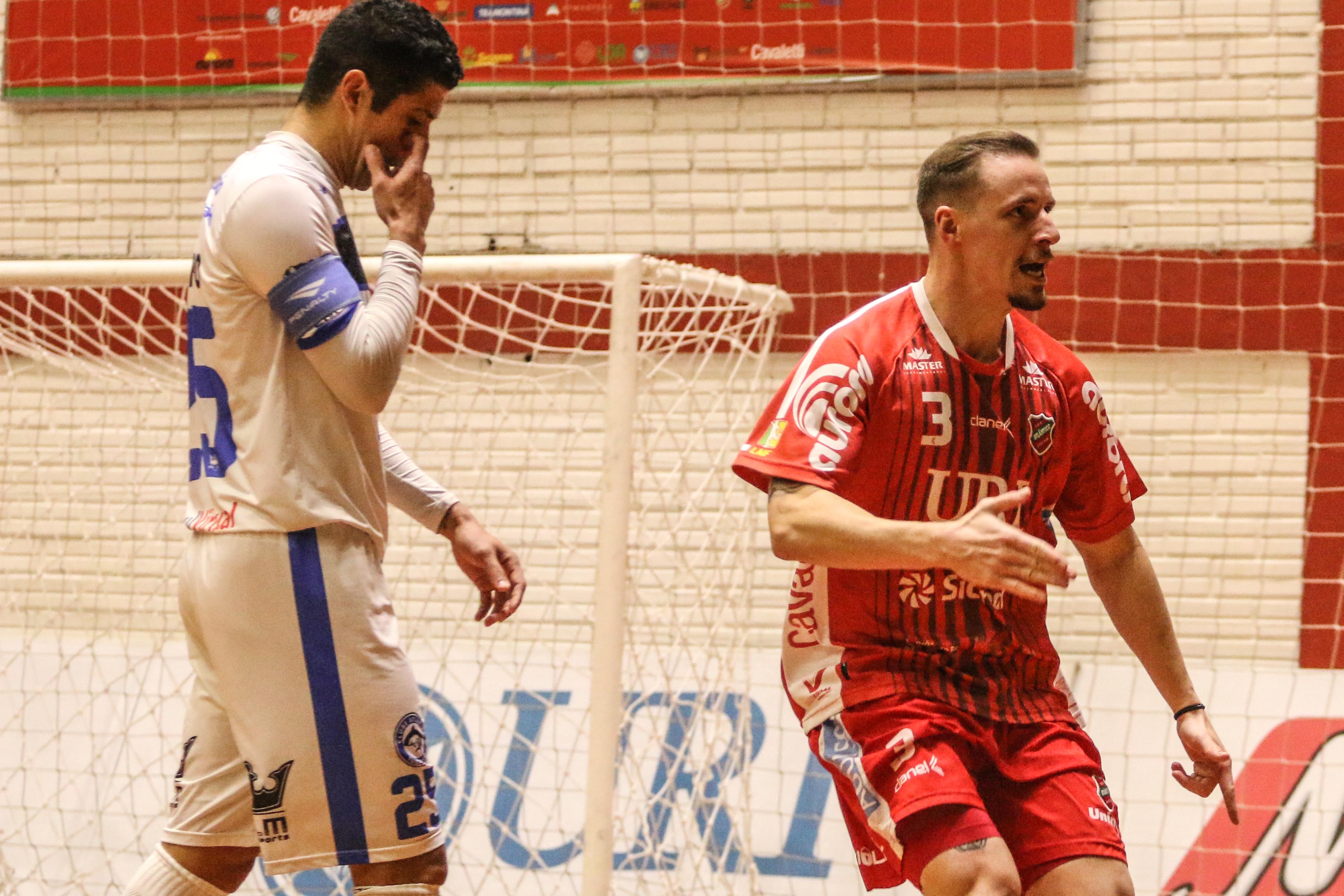 E a 20 segundos do fim do jogo, o Tubarão errou no goleiro linha, Selbach roubou e tocou do meio da quadra para fazer 6 a 2.