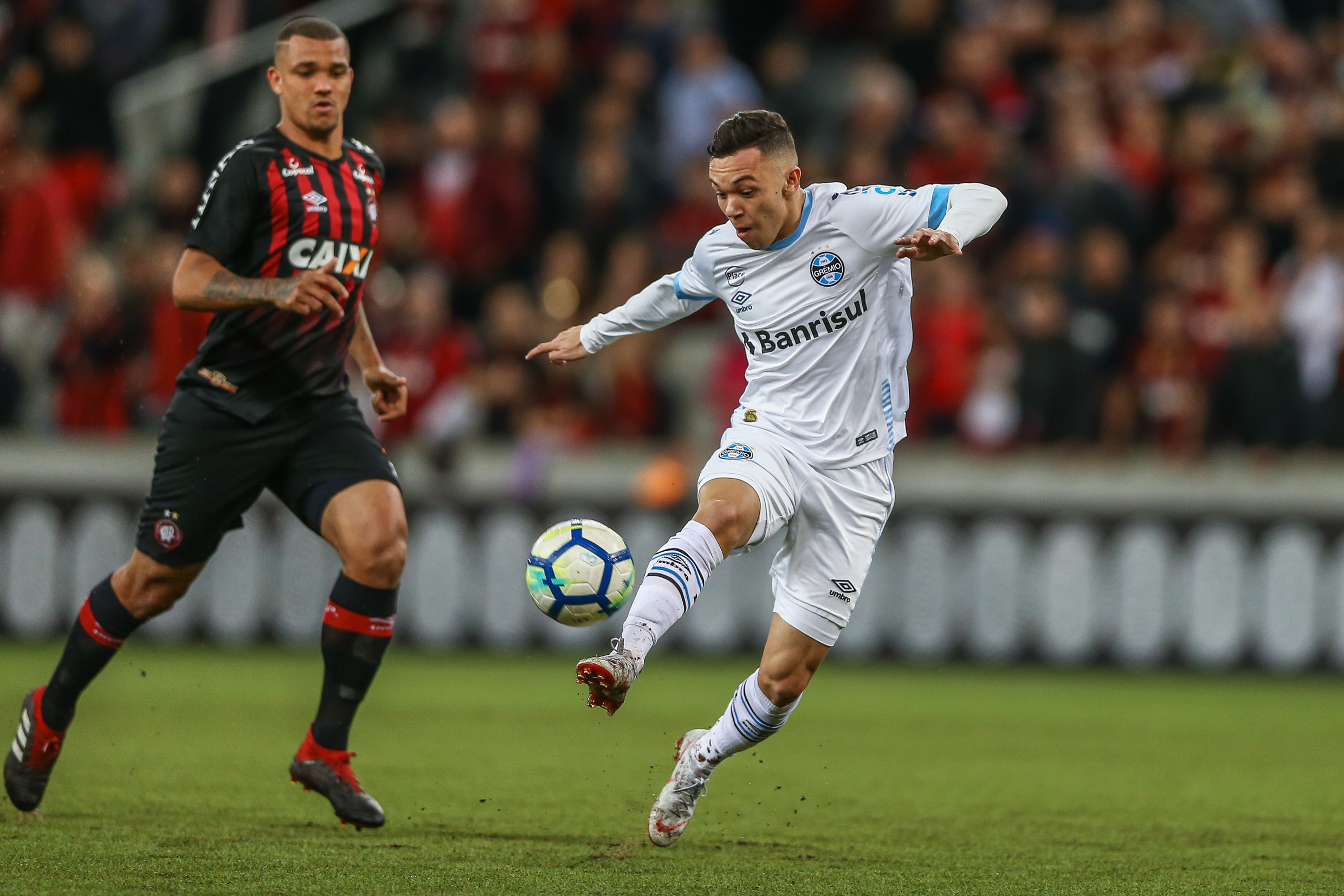 O Furacão respondeu pela esquerda, com Renan Lodi, que chutou cruzado. O arqueiro gremista defendeu.