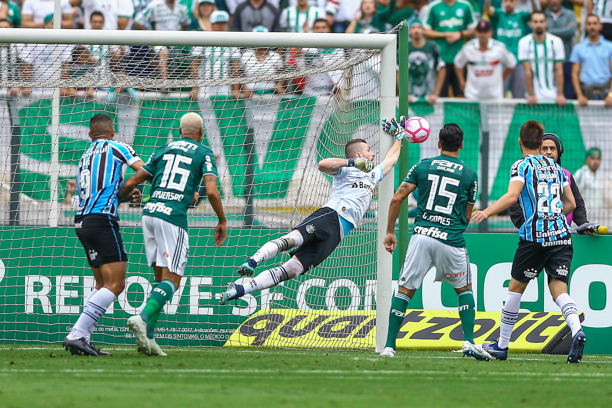 O Grêmio tentou responder rápido e brecou na boa organização tática do líder do Brasileiro. Luan, a estrela gremista, tentou cair pela direita, mas teve atuação discreta. Na verdade, quem quase marcou mais um foi o Palmeiras, que viu Bruno Henrique chutar sem goleiro e Cícero salvar em cima da linha.