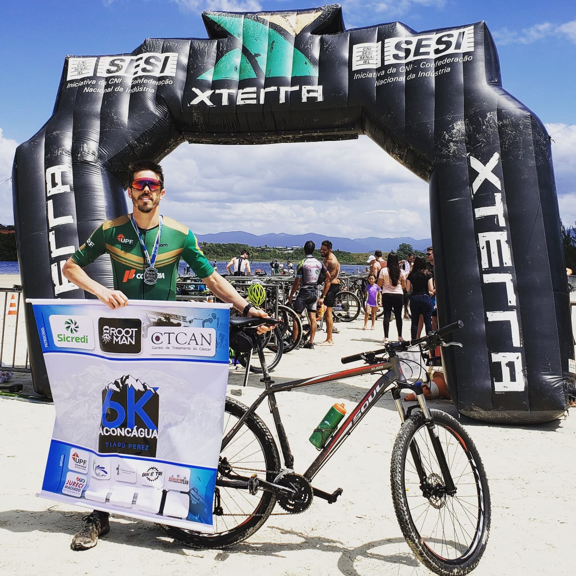 Santa Catarina sediou no último final de semana, o XTerra-Camp Praia do Rosa, considerada a maior experiência de esportes off road do planeta. O atleta gaúcho, Tiago Perez, esteve disputando as provas de triathlon, que contava com as distâncias de 750 metros de natação, aproximadamente 26 quilômetros de Moutain Bike, por estradas de areia, trilhas e montanhas, e mais 6,5 quilômetros de corrida em trilhas e praias, que contou com a presença de aproximadamente cem atletas. E ele foi o grande vencedor da prova.
