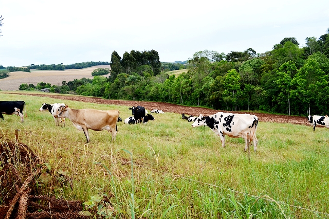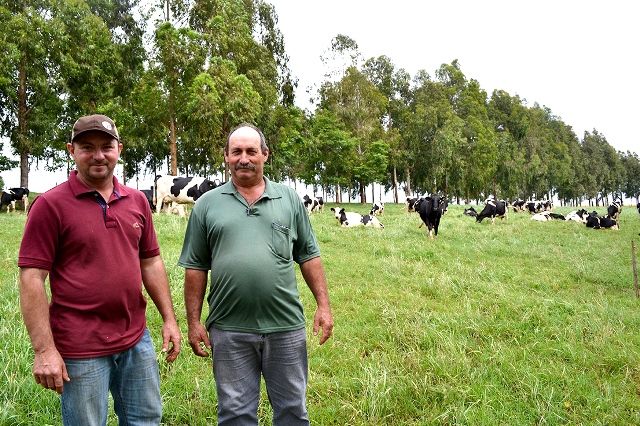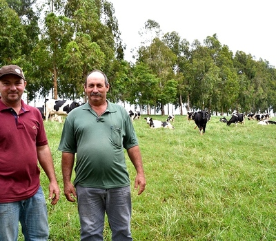 Na comunidade de Nossa Senhora de Lourdes, o agricultor Neri Bampi e a esposa produzem sete mil litros de leite por mês com 14 animais em lactação. Na propriedade são 27 animais no total e a própria família cria as novilhas. Atualmente a família recebe R$ 1,27 por litro e garante um lucro de quase 60%, ou seja, o custo de produção e o frete representam menos que a metade do eu recebem. Isso acontece porque a família produz leite exclusivamente à pasto. A única alimentação adicional vem da silagem de milho plantada em três hectares da propriedade. A silagem garante alimento quando a pastagem não dá conta. “Para quem tem pouca terra como nós, o leite é um excelente negócio. Para produzir grãos e ter a mesma renda, teríamos que ter mais terra”, raciocina Neri. Ele tem auxílio da prefeitura de Cruzaltense para fazer a silagem. A Secretaria da Agricultura fornece as máquinas a preço subsidiado para os produtores de leite. “É uma boa ajuda, principalmente porque falta mão de obra na agricultura. Quando vem a máquina também vem junto o operador”, avalia o agricultor.