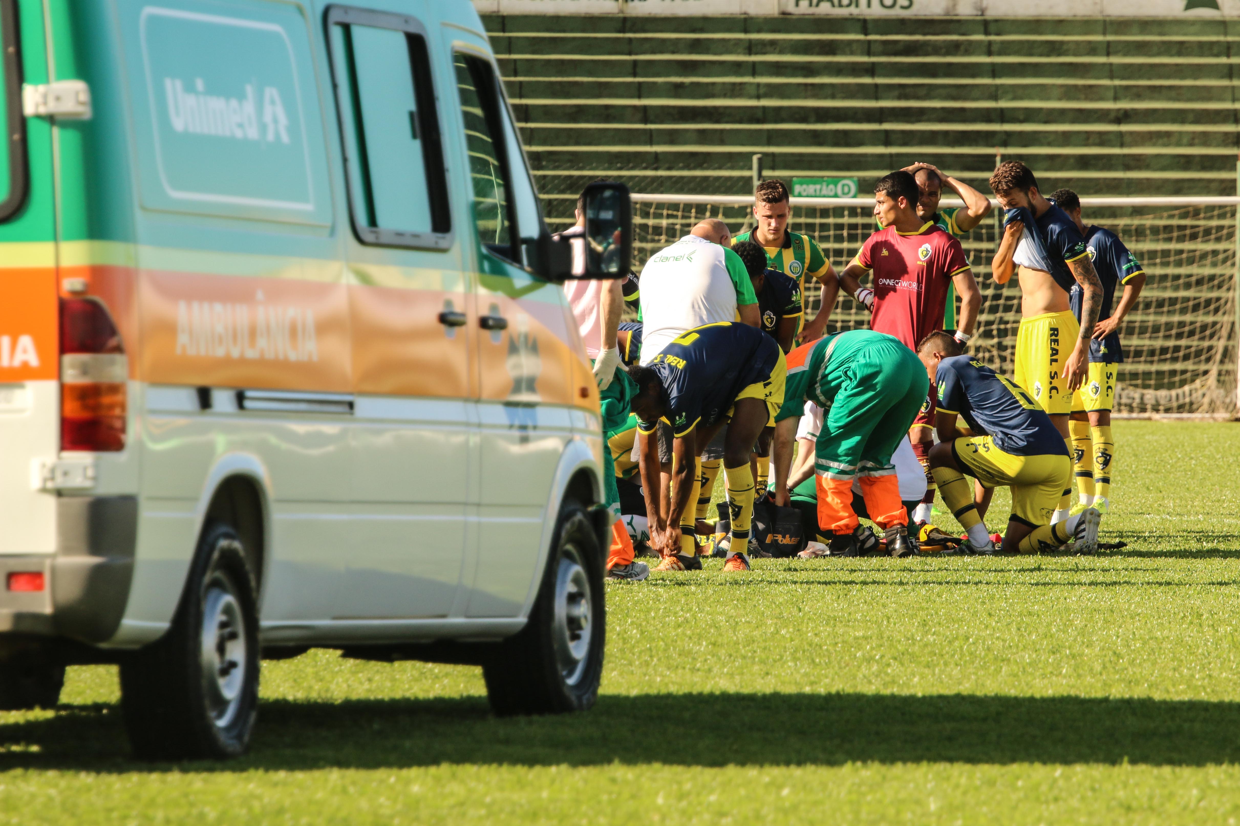 O jogo ficou parado então por 26 minutos até que a ambulância retornasse ao estádio Colosso da Lagoa. Na volta ao jogo, o árbitro Daniel Soder entendeu que a jogada foi agressão e expulsou Claudinho para muito protesto dos erechinenses.