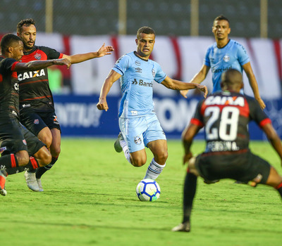 O segundo tempo também começou morno. O Grêmio acordou só aos 11 minutos com duas chances. Everton achou Alisson que tentou, mas João Gabriel fez a defesa. No lance seguinte, André dividiu com o zagueiro e quase marcou, mas o goleiro baiano voltou a aparecer.