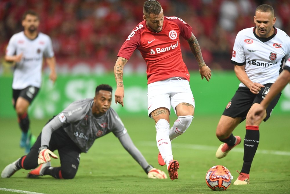7min - Após jogada pela esquerda, D'Alessandro recebe dentro da área e enche o pé para o chute, que explode na defesa adversária. Na sequência, Víctor Cuesta aparece livre na cobrança de ecanteio, mas a tentativa sai pelo lado direito.
