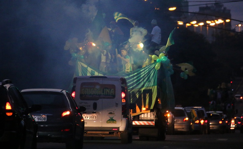 Com sinalizadores, os torcedores entoaram cânticos da torcida e uma parte do hino do clube. O trajeto teve como destino a praça da prefeitura.