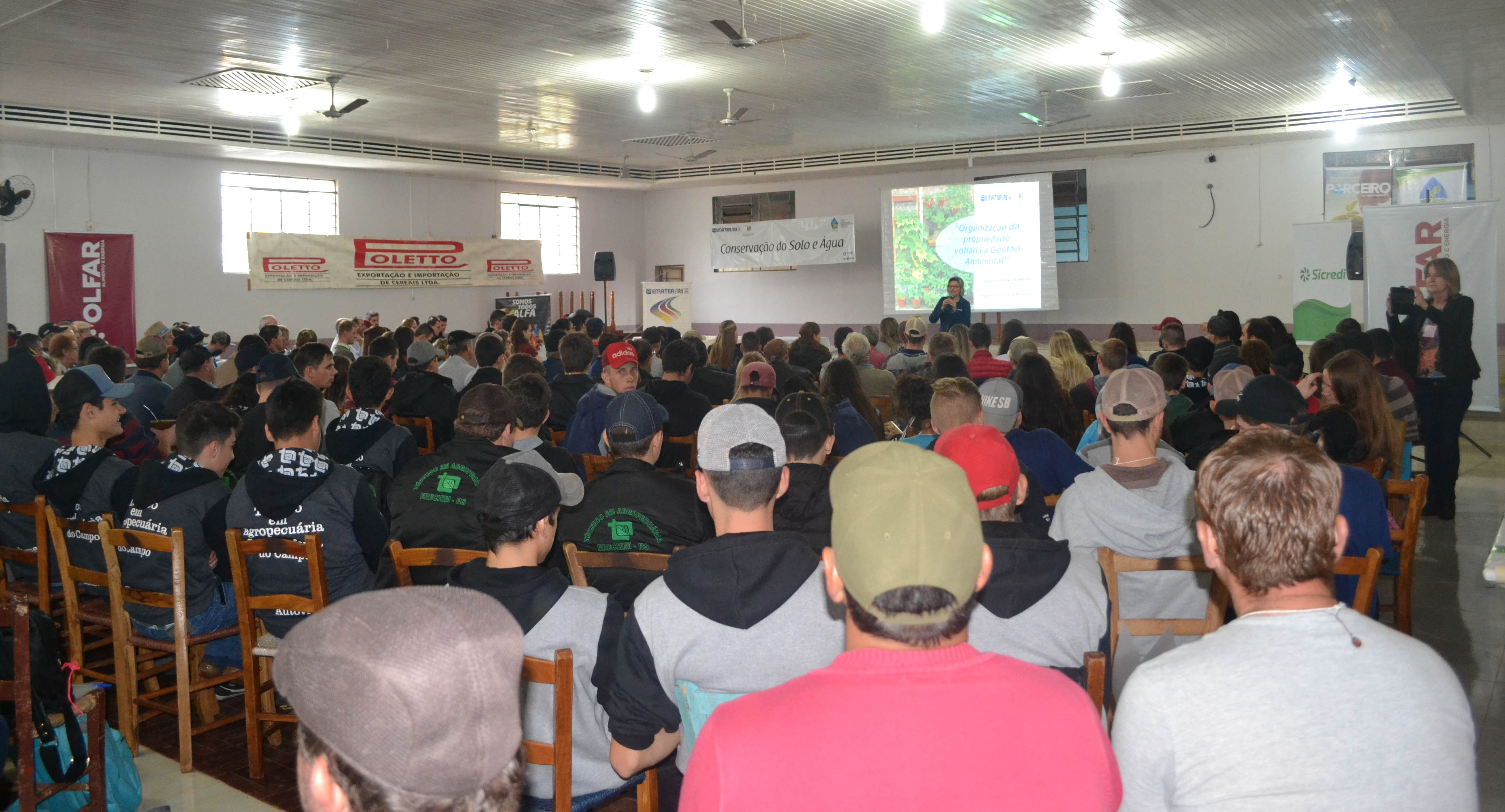 A primeira parte do evento foi realizada no salão da Comunidade Santo Antônio. As extensionistas da Emater, Angélica Gazzoni e Nádia da Rosa, apresentaram a importância da organização da propriedade voltada para a gestão ambiental, destacando a necessidade de haver espaços de convivência, jardinagem, jardins comestível (com hortaliças e frutas), jardins filtrantes, proteção de fontes e ações como a limpeza da caixa de água, saneamento básico, entre outros. A diretora executiva da Simbalagens, Sandra Rodrigues, falou sobre a logística reversa das embalagens de agrotóxicos. A Simbalagens está instalada em Passo Fundo e recebe todas as embalagens que são devolvidas pelos agricultores do Alto Uruguai e de outras regiões do estado. Ela disse que o Brasil é um exemplo neste setor porque 94% das embalagens de agrotóxicas são devolvidas pelos agricultores.