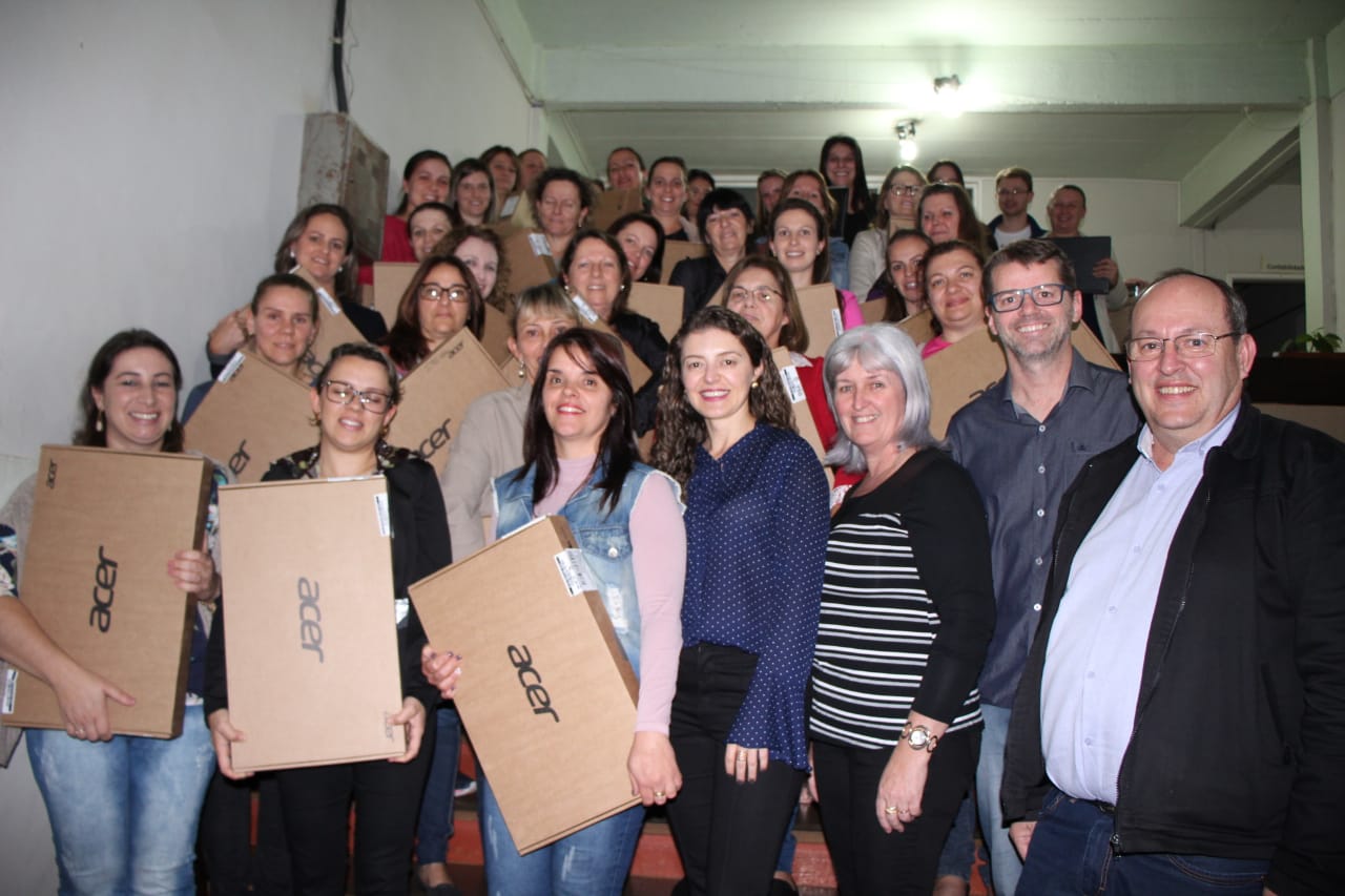 As novas tecnologias têm quebrado uma série de paradigmas nos processos de ensino e aprendizagem pelo mundo. Com o objetivo de ampliar as ferramentas pedagógicas para os professores, bem como ampliar a produção cultural e pesquisa dos profissionais da de Gaurama, o Governo Municipal entregou 40 notebooks aos professores da rede municipal de ensino. A cerimônia de entrega foi realizada na noite de ontem, dia 13/06, na Câmara Municipal de Vereadores da cidade.