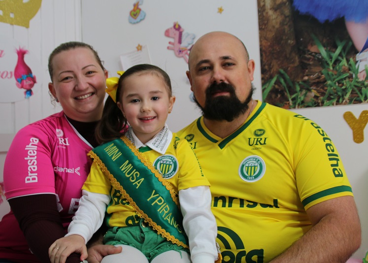 O quarto enfeitado com Barbies e ursinhos de pelúcia, divide espaços com pôsteres e produtos do Ypiranga. Não estamos em um quarto comum, estamos na casa da mini musa do Canarinho: Junia Salini. Aos quatro anos de idade, a pequena torcedora é conhecida por estar presente no estádio Colosso da Lagoa apoiando o time erechinense.