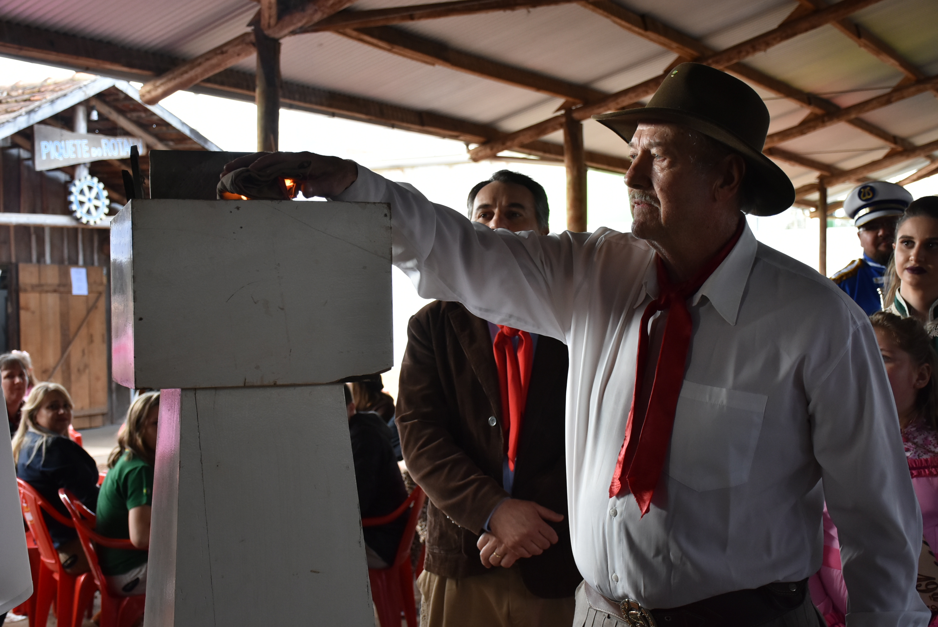 Após o grande Desfile Farroupilha do dia 20 de setembro, que contou com a participação de mais de 35 entidades, realizado na Avenida Severiano de Almeida, o Patrono do 10º Acampamento Farroupilha, Jaime Tonial, procedeu a extinção da Chama Crioula.