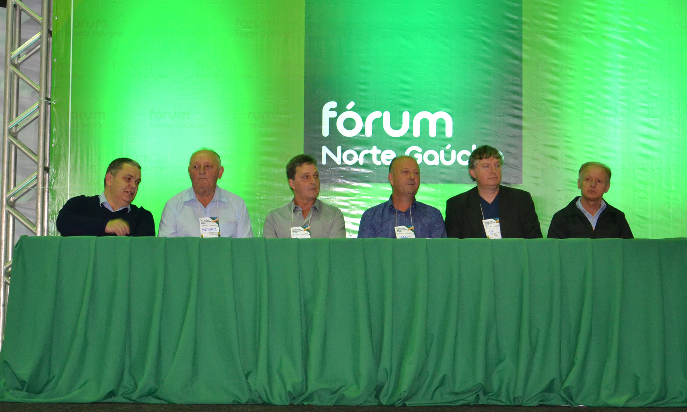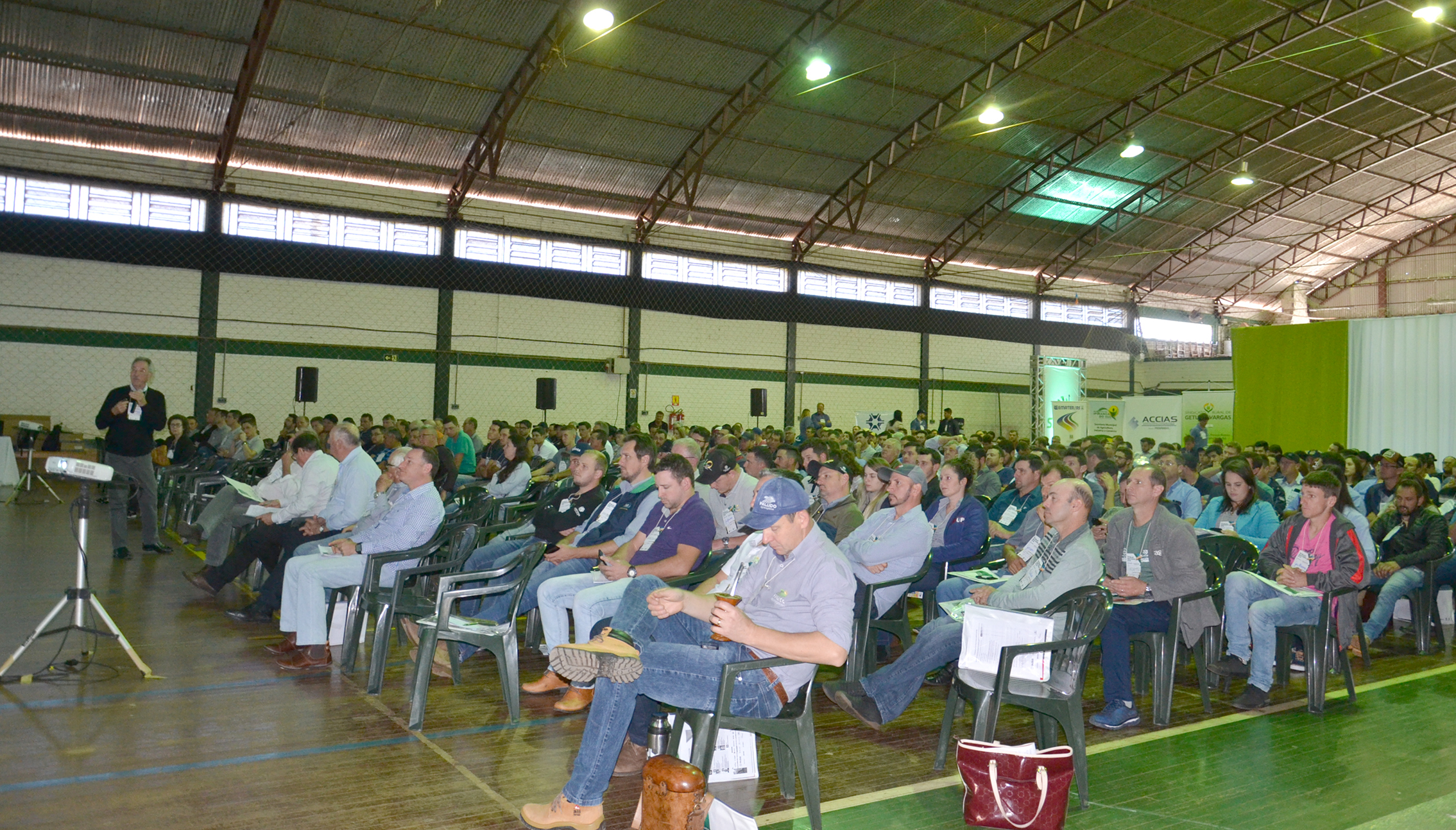 Mais de 400 pessoas entre produtores rurais, engenheiros agrônomos, técnicos agrícolas e estudantes participaram do VI Fórum Norte Gaúcho da Soja realizado na sexta-feira, 27, no Centro Esportivo Municipal de Ipiranga do Sul. A mesa de autoridades da abertura oficial foi composta por representantes das entidades promotoras do evento: Prefeito de Ipiranga do Sul, Mário Luiz Ceron; vice-prefeito de Ipiranga do Sul, Marco Antonio Sana; presidente do Sindicato Rural de Getúlio Vargas, Sidnei Beledeli; vice-presidente da Associação Comercial, Cultural, Industrial, de Agropecuária e de Serviços de Getúlio Vargas, Geverson Zimmerman; gerente regional da Emater/RS Ascar, Gilberto Tonello; e o coordenador do Curso de Agronomia da Faculdade Ideau, Ronaldo Meirelles.