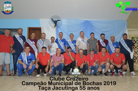 Aconteceu na última sexta-feira (22), nas dependências do Clube Cruzeiro a entrega da Premiação do Campeonato Municipal Taça Jacutinga 55 anos de Bochas 2019, em que a equipe do Clube Cruzeiros conquistou o título de campeã, a equipe de Bela Vista conquistou o vice-campeonato, seguindo o 3º lugar para Bela Esperança e 4º lugar para a Linha União. O evento contou com a participação do prefeito Beto Bordin, da vice-prefeita Salete Luft, da Secretária de Educação Cleonice Centofante e demais secretários municipais, do Presidente do CMD Arquemino Monteiro e direção do CMD, diversas autoridades municipais além de muitos atletas.