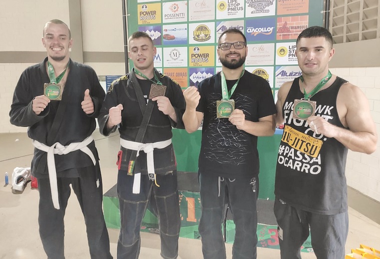 No último domingo (15), o time Checkmat de Erechim do professor Tiago The Police, estiveram competindo na 4ª Copa Oeste de Jiu-jitsu em Chapecó. Os atletas Bruno Alvin e Fabrício Voidila garantiram o lugar mais alto do pódio, e Gabriel Kresmaruch e Orion Roberto Fischer enceraram as suas participações no 3º lugar. “Vale ressaltar a dificuldade dos atletas na falta de patrocínio, que mesmo sem apoio conseguem deslocar-se até as competições sempre representando a bandeira de Erechim”, destaca.