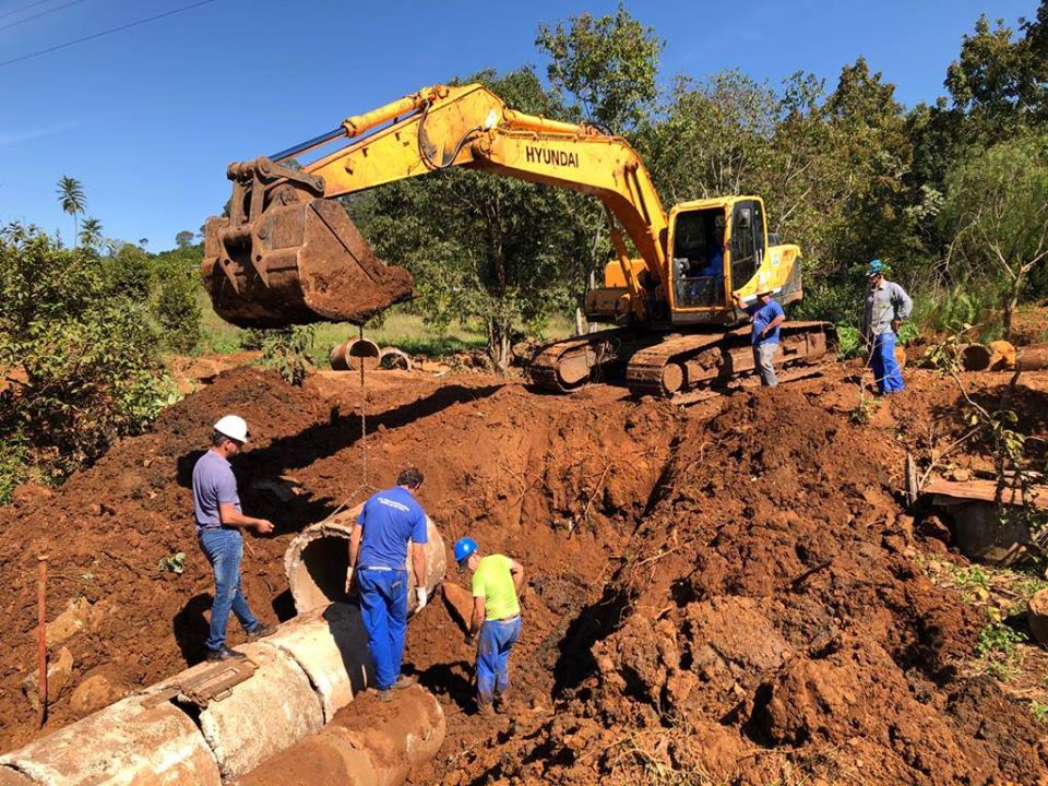 As obras de pavimentação na Comunidade do Jubaré já estão avançadas, e a equipe da Secretaria de Obras da prefeitura está executando 500 metros de rede pluvial para, na sequência, a empresa executar a terraplanagem e, após, a pavimentação asfáltica.