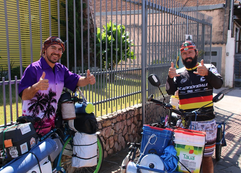Em Foz do Iguaçu, Carlitos conheceu Jaison José de Oliveira. Conhecido como o “pedaleiro viajante”, o catarinense que é apaixonado por pedal é adepto ao cicloturismo, largou o emprego de vendedor autônomo para se aventurar e conhecer o Brasil, além dos países vizinhos. “Vim monitorando e ajudando o Carlitos. Nós vamos até a Serra Gaúcha, e lá tem muitas oportunidades de trabalho para ele. Depois disso, irei trilhar o meu caminho. Vou contornar a Serra Gaúcha e depois ir em direção à Serra do Rio do Rastro”, destaca o brasileiro.