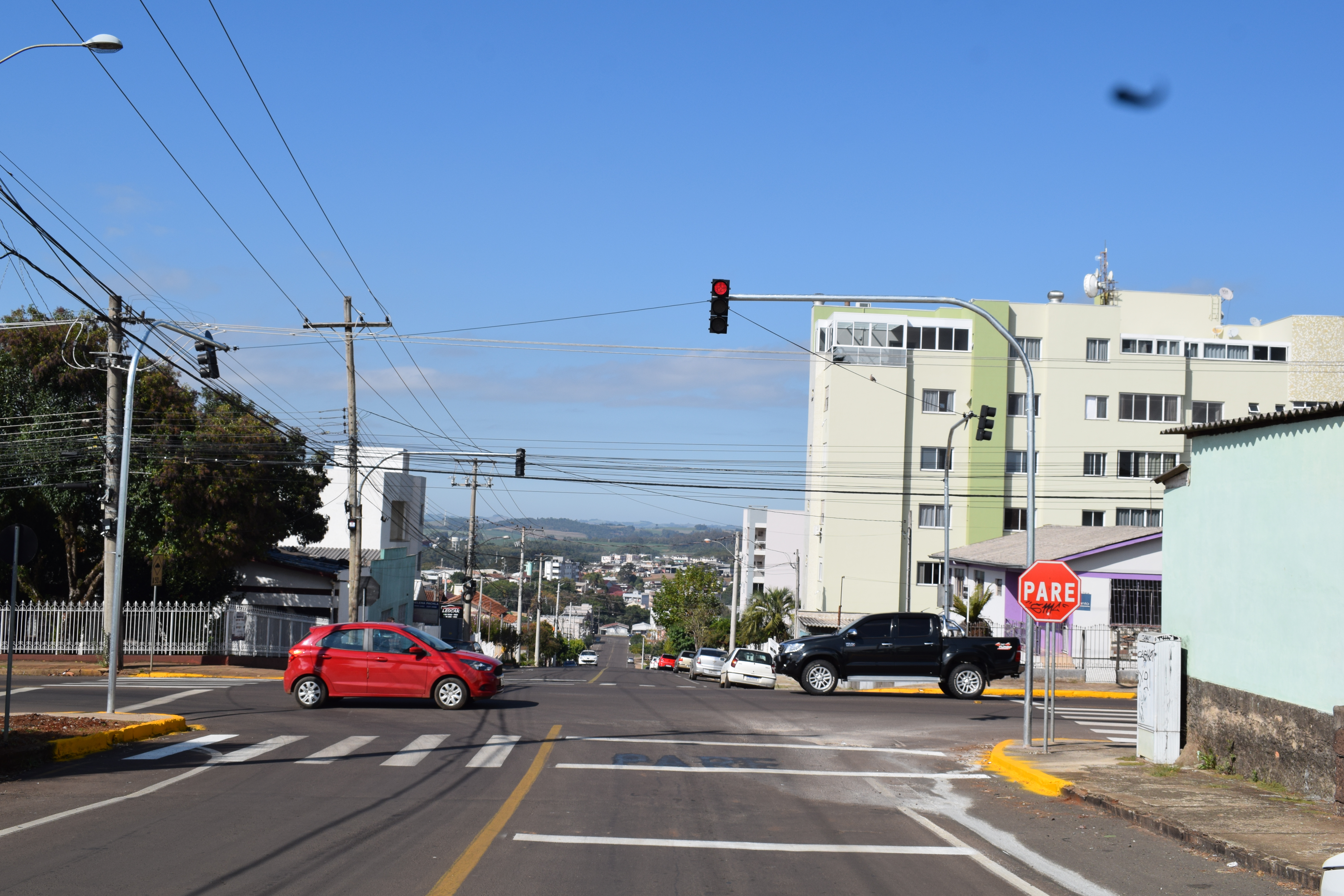 Os novos semáforos foram instalados nas ruas Itália com a Rua 20 de Setembro, a Rua Uruguai com a Rua porto Alegre, a Rua Washinton Luiz com a Avenida Pedro Pinto de Souza e a Rua Espírito Santo com a Rua Anita Garibaldi.