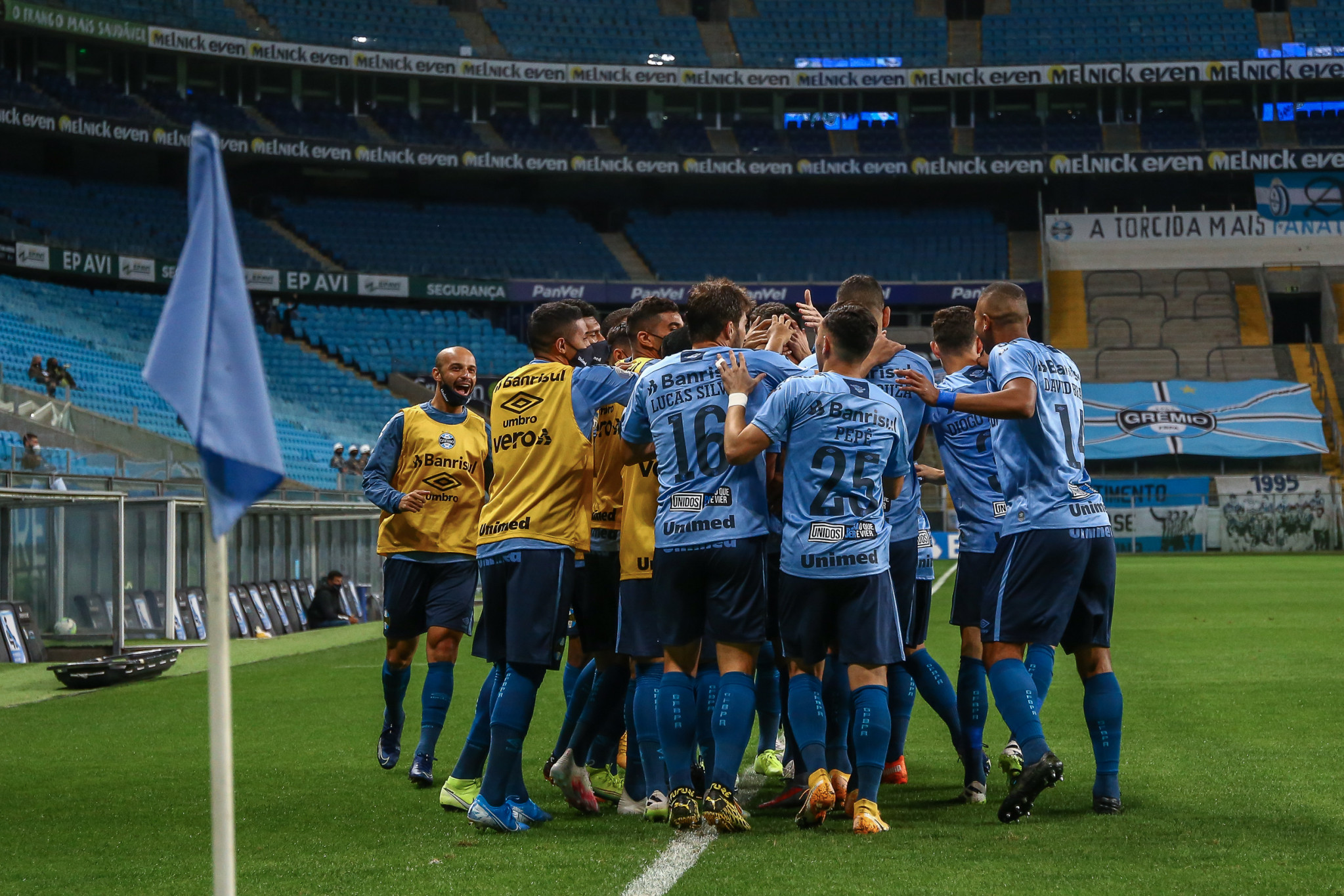 Em campo o técnico Renato Portaluppi escalou sua equipe com Vanderlei, Victor Ferraz, Paulo Miranda, David Braz, Diogo Barbosa, Lucas Silva, Matheus Henrique, Robinho, Luiz Fernando, Diego Souza e Pepê e a partida iniciou de forma favorável para o time gaúcho.