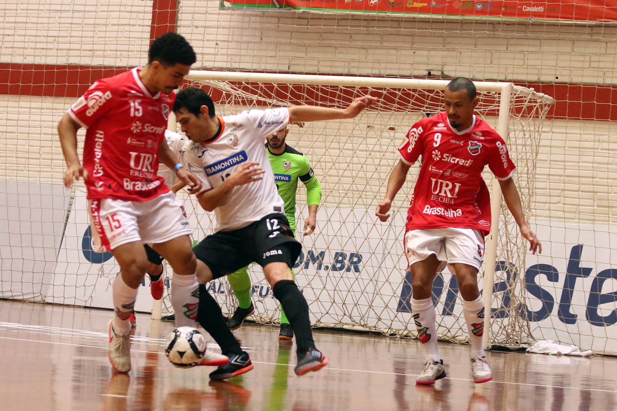 Mas ainda na primeira etapa, aos 19min37, quem teve tiro livre foram os visitantes. Fernando bateu e descontou: 2 a 1.