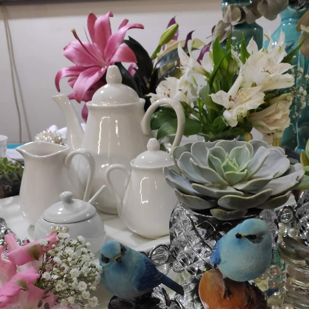 E desta criatividade surgiu uma linha de mesa, com estampas diferenciadas; souplast cheios de charme. Flores em assinaturas; arranjos; Chás da tarde com embalagem retornável; Memórias Afetivas que resgatam e restauram; Objetos que te fizeram bem como as Almofadas dos pets; Almofadas da flor e características de cada signo; Os doces que fizeram parte da infância e muitas outras possibilidades para presentear e encantar.