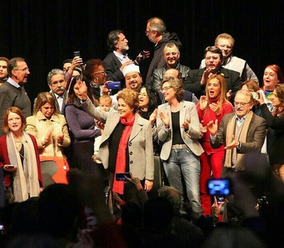 O teatro Dante Barone na Assembleia Legislativa, em Porto Alegre, ficou lotado sexta-feira (3) para receber a presidente afastada Dilma Rousseff. Entre as lideranças presentes estava o deputado estadual Altemir Tortelli (PT), diversos parlamentares do PT e do PCdoB, lideranças sociais e sindicais, movimentos sociais e entidades, os ex governadores Olívio Dutra e Tarso Genro, o ex- ministro Miguel Rossetto.