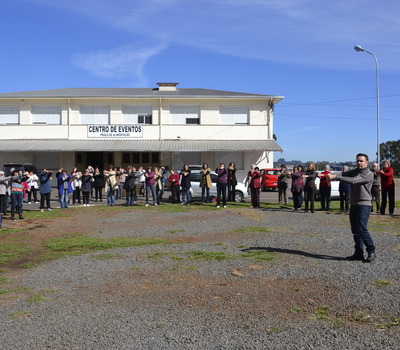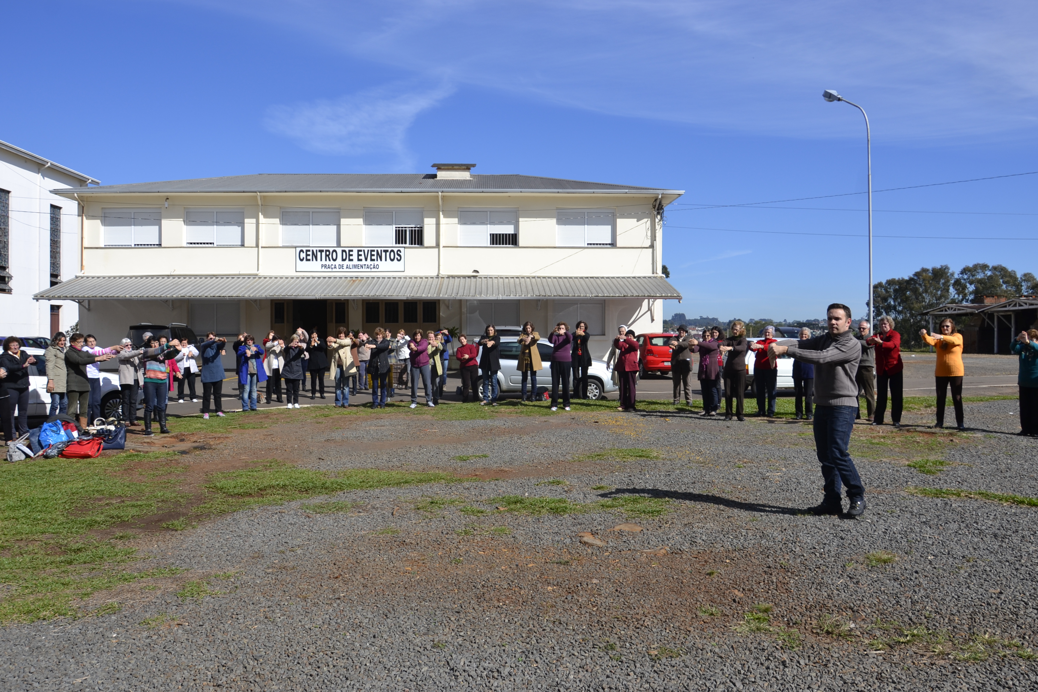 Para falar sobre a importância da atividade física, foi a vez do fisioterapeuta do Hospital de Caridade, Diogo Tapia,que tirou todos das suas cadeiras e coordenou um momento de orientação postural e alongamentos na área externa do Seminário.