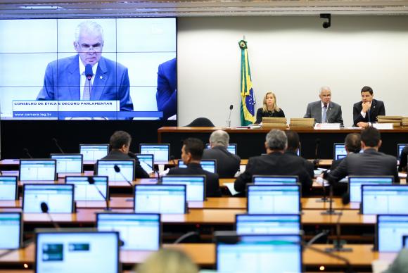 Entre os titulares e suplentes que integram o colegiado, 21 se inscreveram e 18 usaram a palavra por 10 minutos. A maior parte dos parlamentares defendeu, nos primeiros momentos da reunião, o relatório que pede o afastamento do peemedebista. Na defesa de Cunha, parlamentares como Laerte Bessa (PR-DF), Sérgio Moraes (PTB-RS) e Carlos Marun (PMDB-MS) afirmaram que não ficou comprovada a existência de contas no exterior em nome do representado.