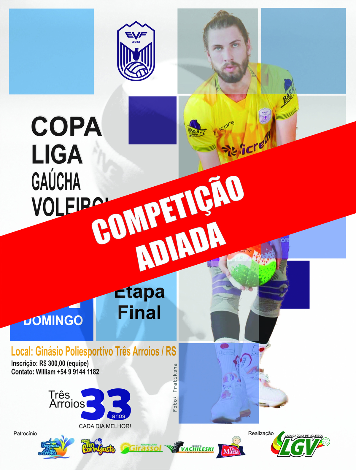 Após reunião emergencial da Comissão Organizadora da Liga Gaúcha de Voleibol, foi definido que a Copa Gaúcha de Voleibol, que seria realizada na cidade de Três Arroios, neste domingo (13), está oficialmente adiada.