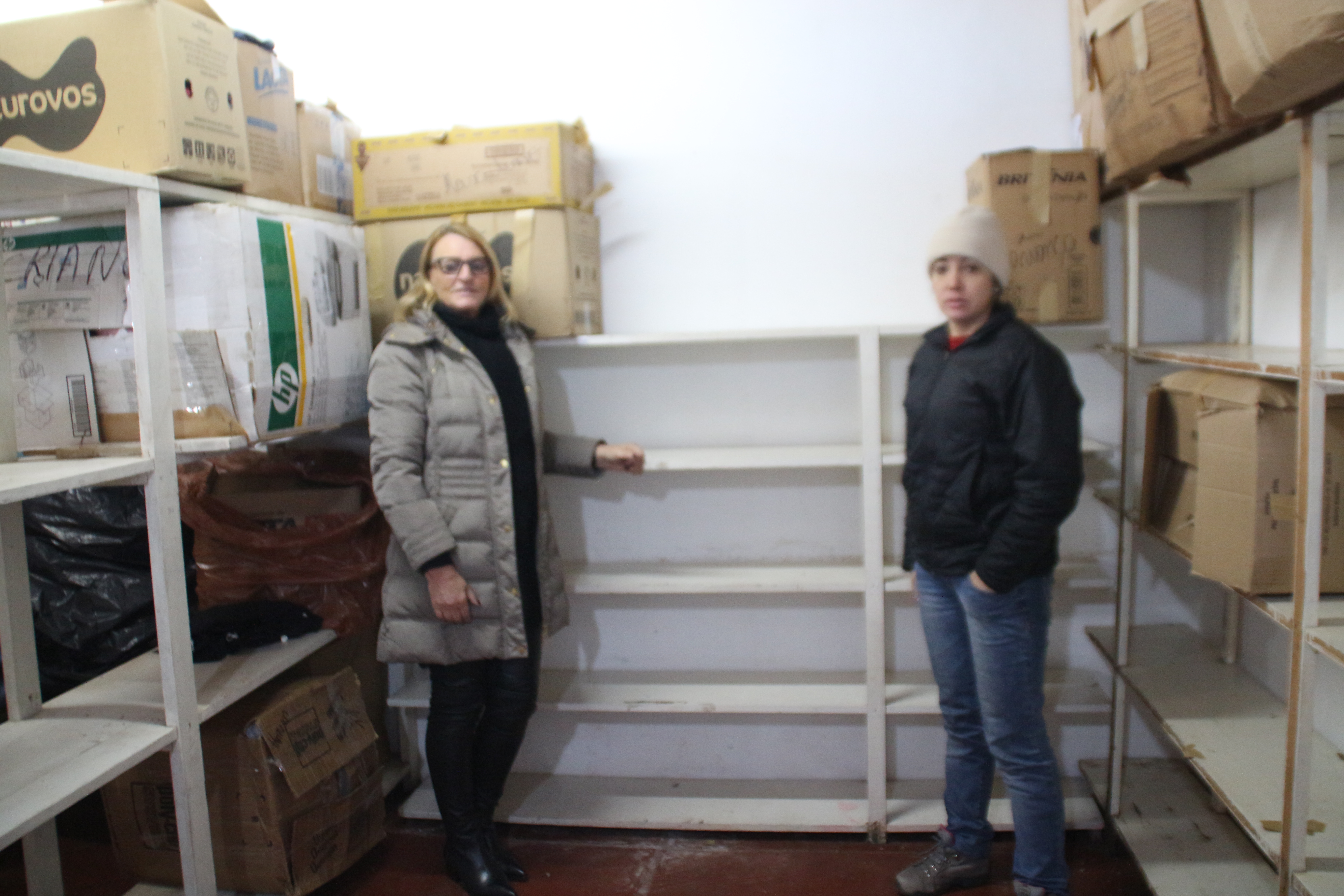 Secretária Maria Dolores Mafacioli Gollin ao lado da funcionária da central de doações Maria Lombardi mostram o baixo número de doações