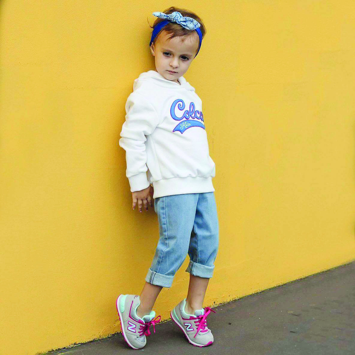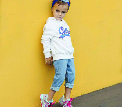 Com apenas dois anos, Isabelli Valentina Baroni se diverte brincando de modelo para as fotos da irmã mais velha
