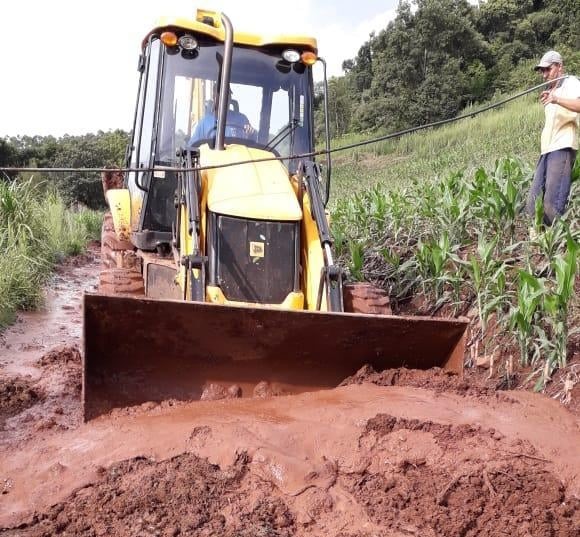 A equipe de Obras trabalhou na segunda-feira (25) para liberar as estradas e vai ter que continuar os serviços para desobstruir passagens e limpar as vias, a fim de solucionar os problemas ocorridos e restabelecer a normalidade o mais breve possível.